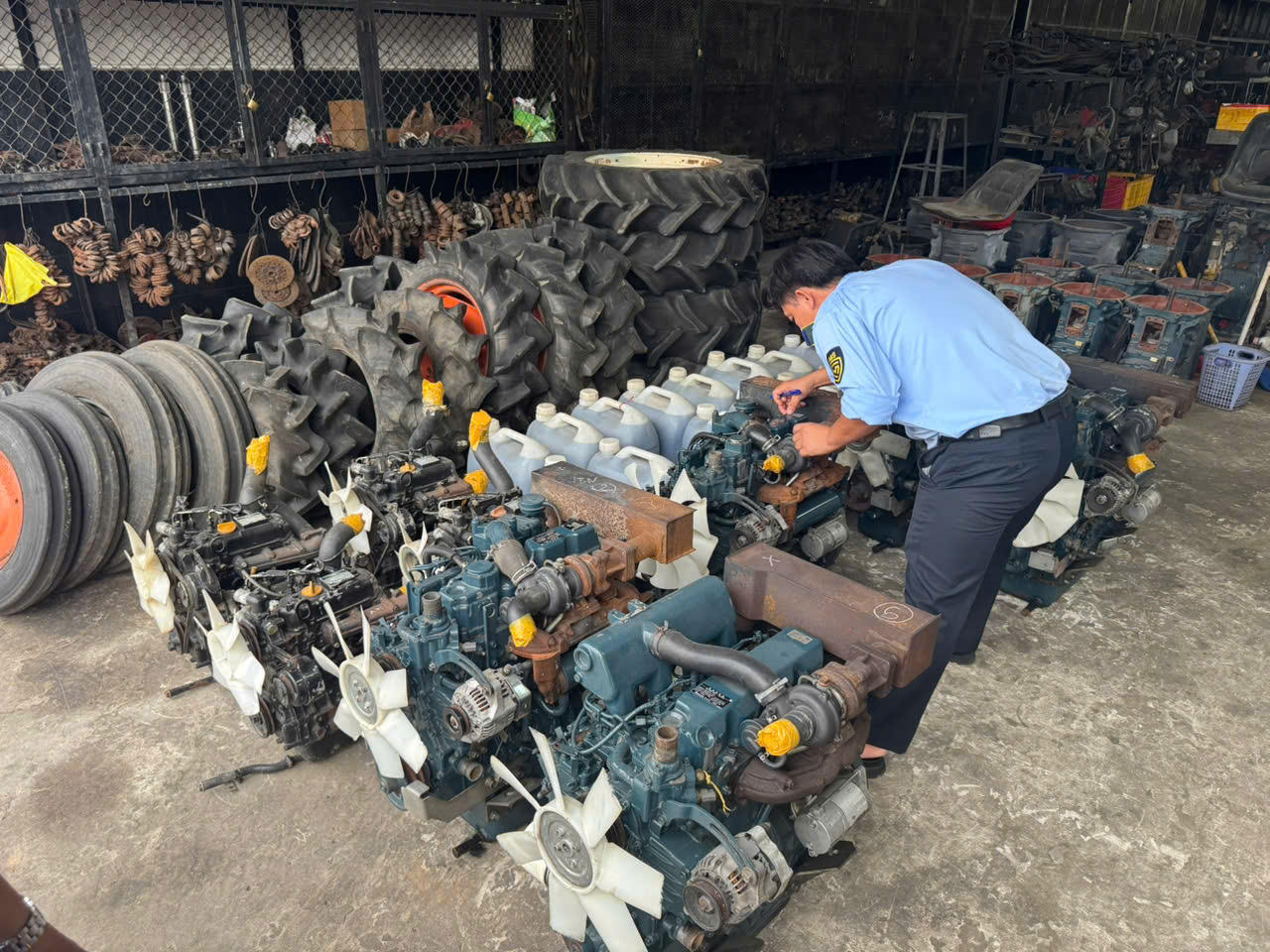 Ngoài ra, cơ sở còn chứa trữ 6 động cơ máy nổ và 30 dàn xới đất các loại đã qua sử dụng, không có thông tin về nguồn gốc, xuất xứ và chất lượng. Tổng trị giá số hàng hóa có dấu hiệu vi phạm ước tính trên 200 triệu đồng.