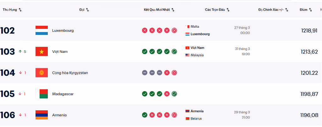 Cơ hội giành kết quả tích cực của Việt Nam càng trở nên rõ ràng. Nếu tận dụng tốt lợi thế sân nhà, đoàn quân của HLV Kim Sang-sik hoàn toàn có thể tiếp tục thăng tiến, hướng tới mục tiêu trở lại top 100 FIFA.