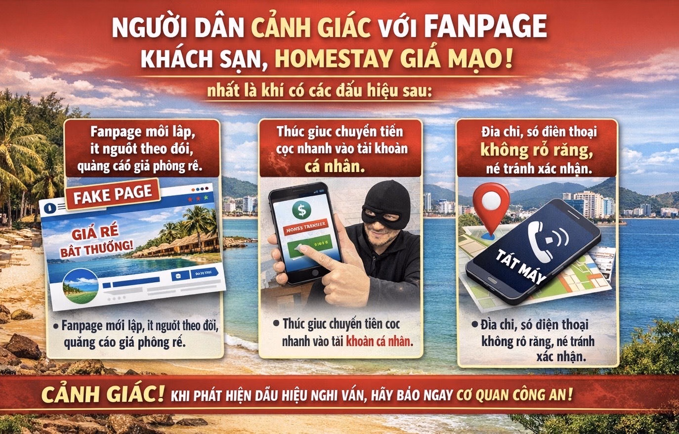 Trước thực trạng này, lực lượng Công an cảnh báo đây là một dạng lừa đảo chiếm đoạt tài sản trên không gian mạng, có tổ chức, lợi dụng tâm lý chủ quan và nhu cầu đặt phòng tăng cao của người dân.