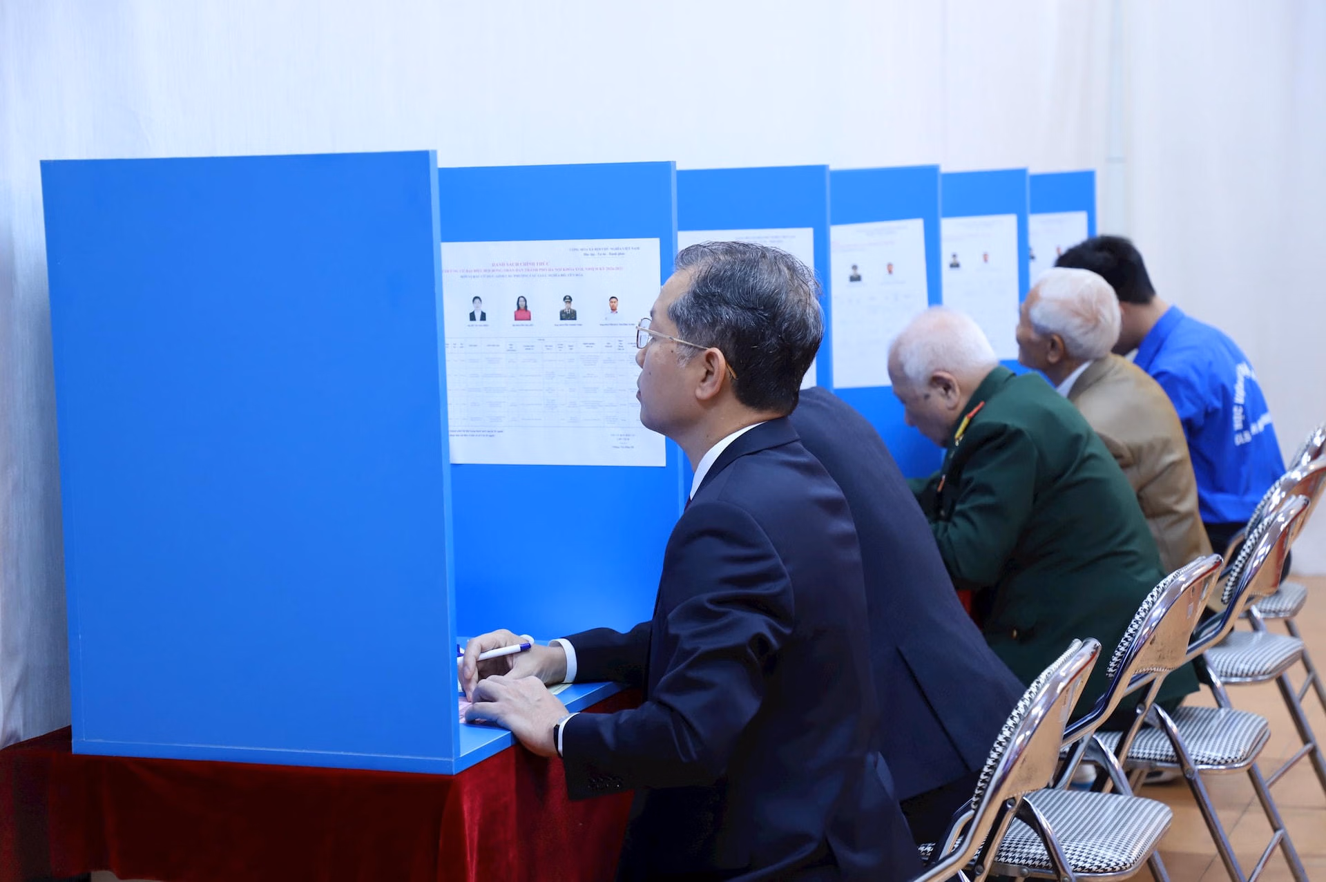 Trong không khí trang nghiêm, phấn khởi của ngày bầu cử, Chánh án Nguyễn Văn Quảng cùng các cử tri cao tuổi đã bỏ những lá phiếu đầu tiên. Sau đó, đông đảo cử tri tại Khu vực bỏ phiếu số 11, phường Cầu Giấy tiếp tục lần lượt thực hiện quyền bầu cử, thể hiện tinh thần trách nhiệm và niềm tin vào cuộc bầu cử dân chủ, đúng pháp luật.