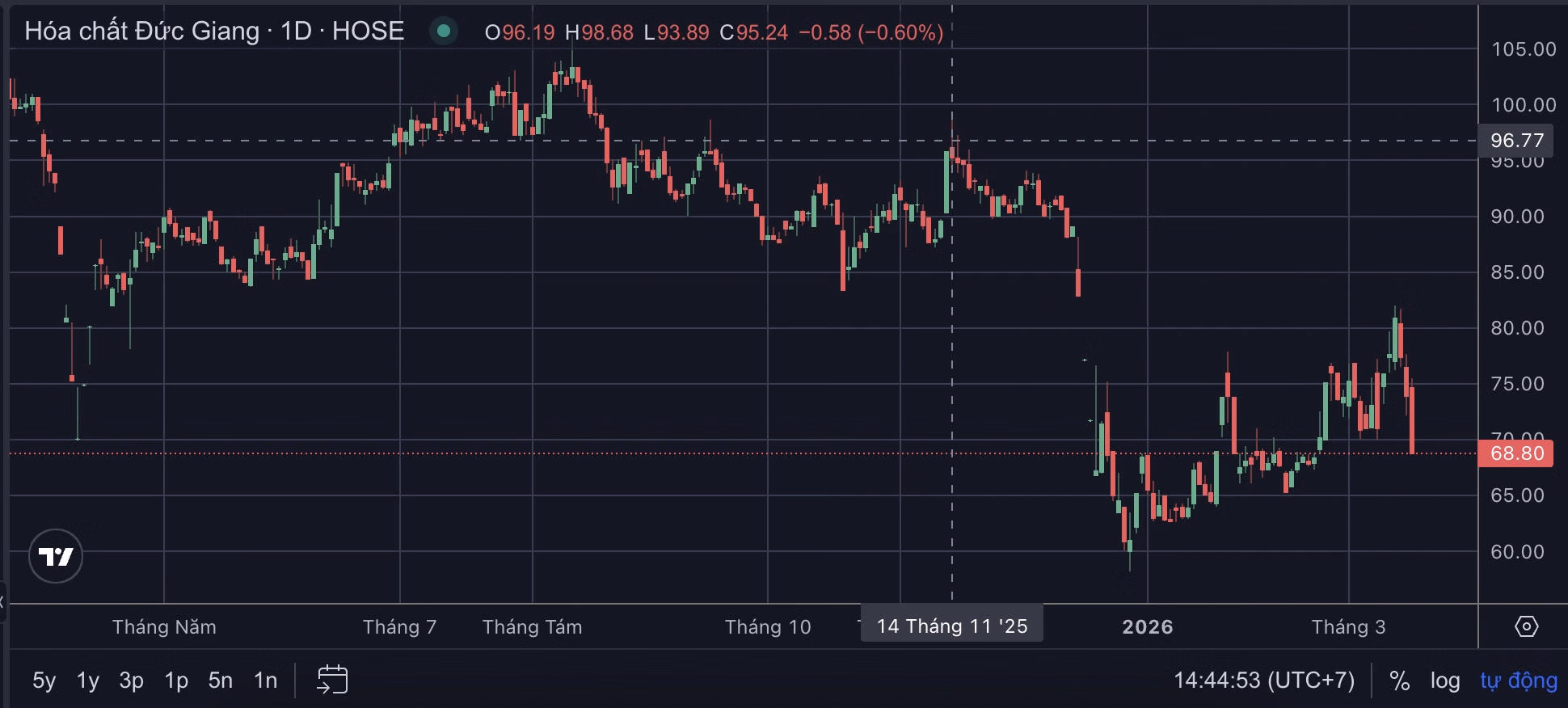 Trước đó, cổ phiếu DGC từng ghi nhận nhịp hồi phục hơn 30% từ vùng đáy cuối năm 2025, song đã quay đầu giảm mạnh trong những phiên gần đây.