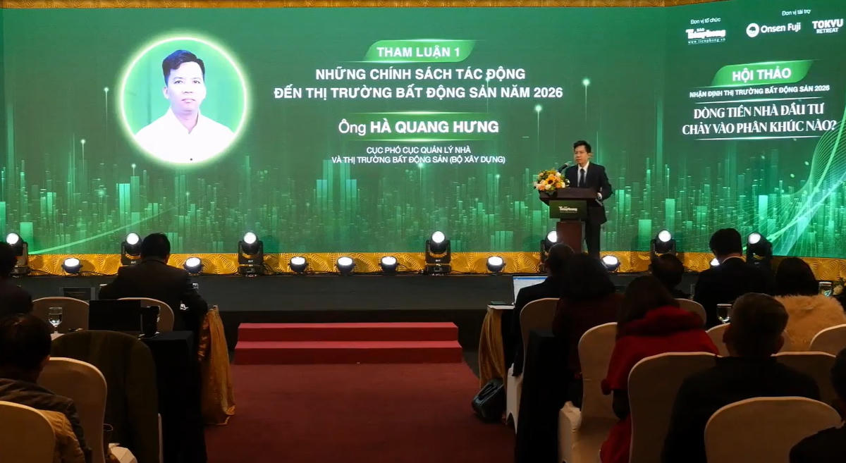 Trong tham luận tại hội thảo "Nhận định thị trường bất động sản năm 2026: Dòng tiền nhà đầu tư chảy vào phân khúc nào, ông Hà Quang Hưng, Phó Cục trưởng Cục Quản lý nhà và thị trường bất động sản (Bộ Xây dựng), nhận định thị trường bất động sản năm 2026 sẽ "sôi động trong sự thận trọng". Ông cũng nhấn mạnh rằng hệ thống pháp luật ban hành năm 2025 và có hiệu lực trong năm 2026 đã tạo ra một khung pháp lý quan trọng để thị trường phát triển ổn định và bền vững.