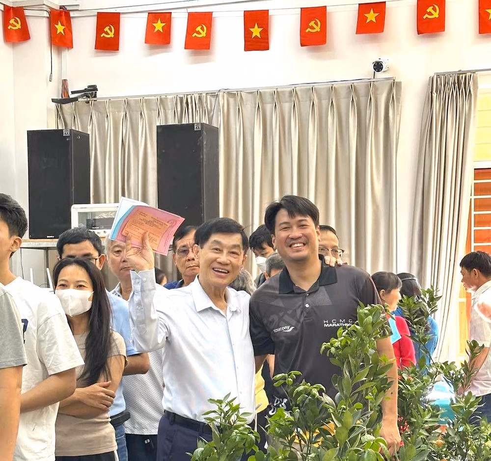 Dừng chân dưới lá cờ Tổ quốc trước điểm bỏ phiếu ngày 15/3, ông Johnathan Hạnh Nguyễn, Chủ tịch Tập đoàn IPPG, cho biết đi bỏ phiếu là nghĩa vụ thiêng liêng của một công dân yêu nước, là quyền được tự tay lựa chọn người tài đức gánh vác vận mệnh đất nước.