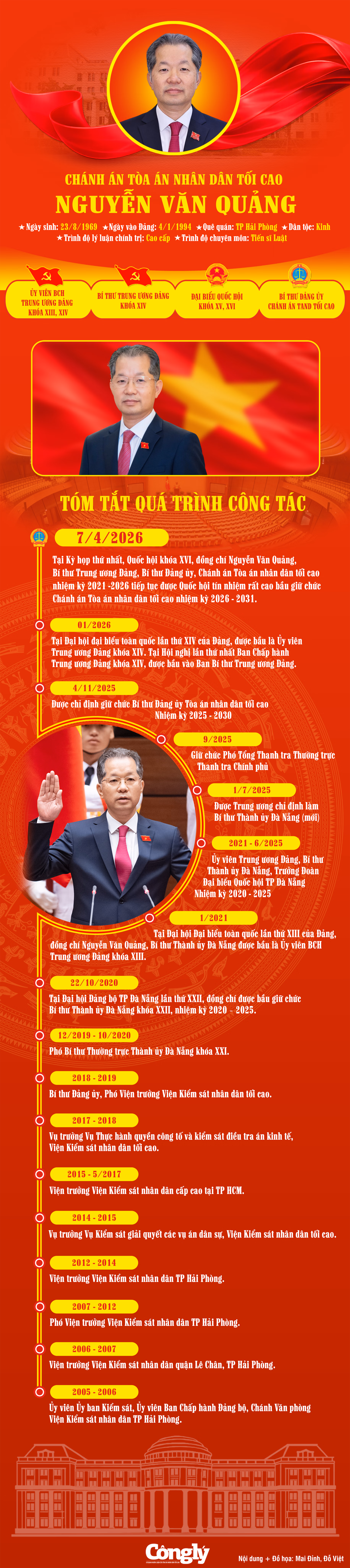Chiều 7/4, tại Kỳ họp thứ nhất, Quốc hội khóa XVI đã bầu đồng chí Nguyễn Văn Quảng, Bí thư Trung ương Đảng, Bí thư Đảng ủy, Chánh án Tòa án nhân dân tối cao nhiệm kỳ 2021 - 2026, đại biểu Quốc hội khóa XVI, tiếp tục giữ chức Chánh án Tòa án nhân dân tối cao nhiệm kỳ 2026-2031.