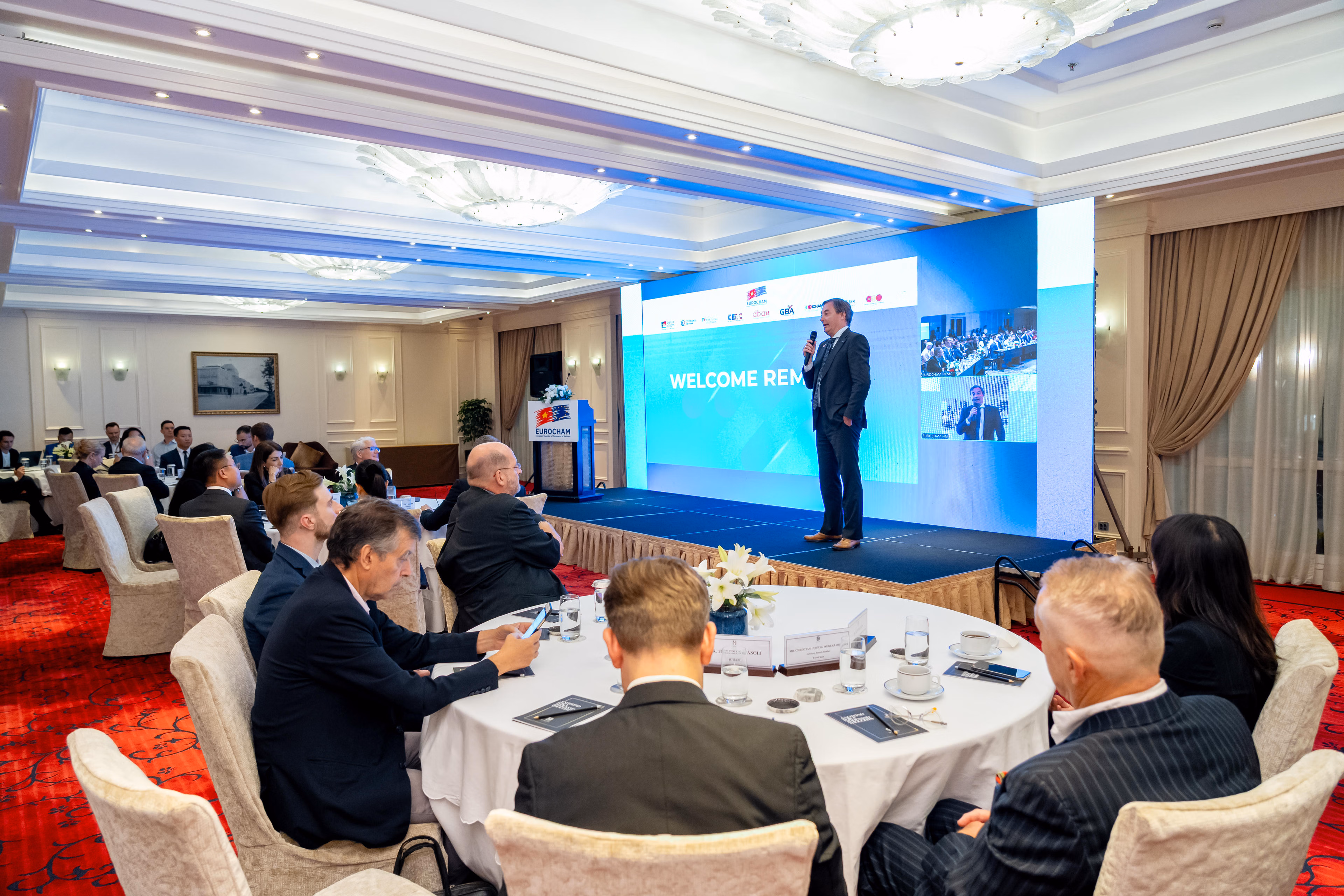 Ngài Đại sứ khẳng định, đây là thời điểm vàng để chuyển hóa các tham vọng chung về năng lượng, giao thông vận tải và cơ sở hạ tầng số thành kết quả kinh doanh cụ thể thông qua sự hợp tác chặt chẽ giữa Phái đoàn EU và EuroCham.