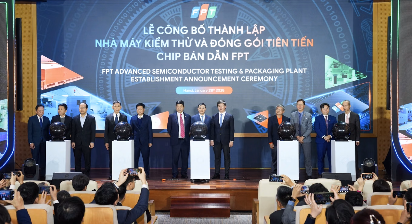 Sáng 28/1 tại Hà Nội, Tập đoàn FPT công bố thành lập Nhà máy Kiểm thử và Đóng gói tiên tiến chip bán dẫn FPT tập trung vào khâu kiểm thử và đóng gói (OSAT) – một mắt xích quan trọng trong chuỗi sản xuất chip bán dẫn toàn cầu. Đây là lĩnh vực đòi hỏi trình độ công nghệ cao, quy trình nghiêm ngặt và nguồn nhân lực kỹ thuật chất lượng cao, đồng thời có vai trò quyết định đến chất lượng và độ tin cậy của sản phẩm chip trước khi đưa ra thị trường.