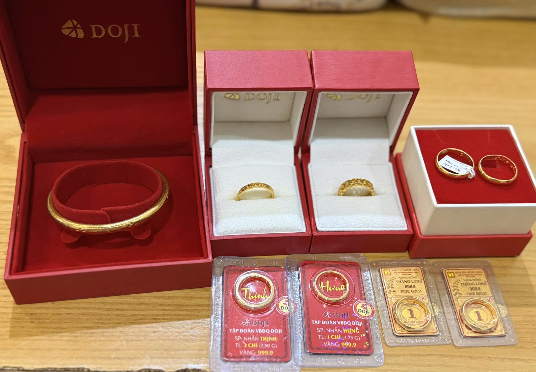 Giá vàng nhẫn Doji Hưng Thịnh Vượng 9999 của Tập đoàn Doji tại thị trường Hà Nội giao dịch ở mức 168,3 - 171,3 triệu đồng/lượng, giảm 200.000 đồng/lượng ở chiều mua vào và chiều bán ra so với cùng thời điểm hôm qua. Chênh lệch chiều mua – bán ở mức 3 triệu đồng.