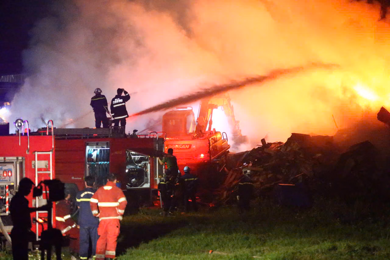 Theo thông tin ban đầu, vụ cháy xảy ra vào khoảng gần 0h40 tại một xưởng gỗ. Lửa bao trùm toàn bộ khu nhà xưởng, cột khói cao hàng chục mét.