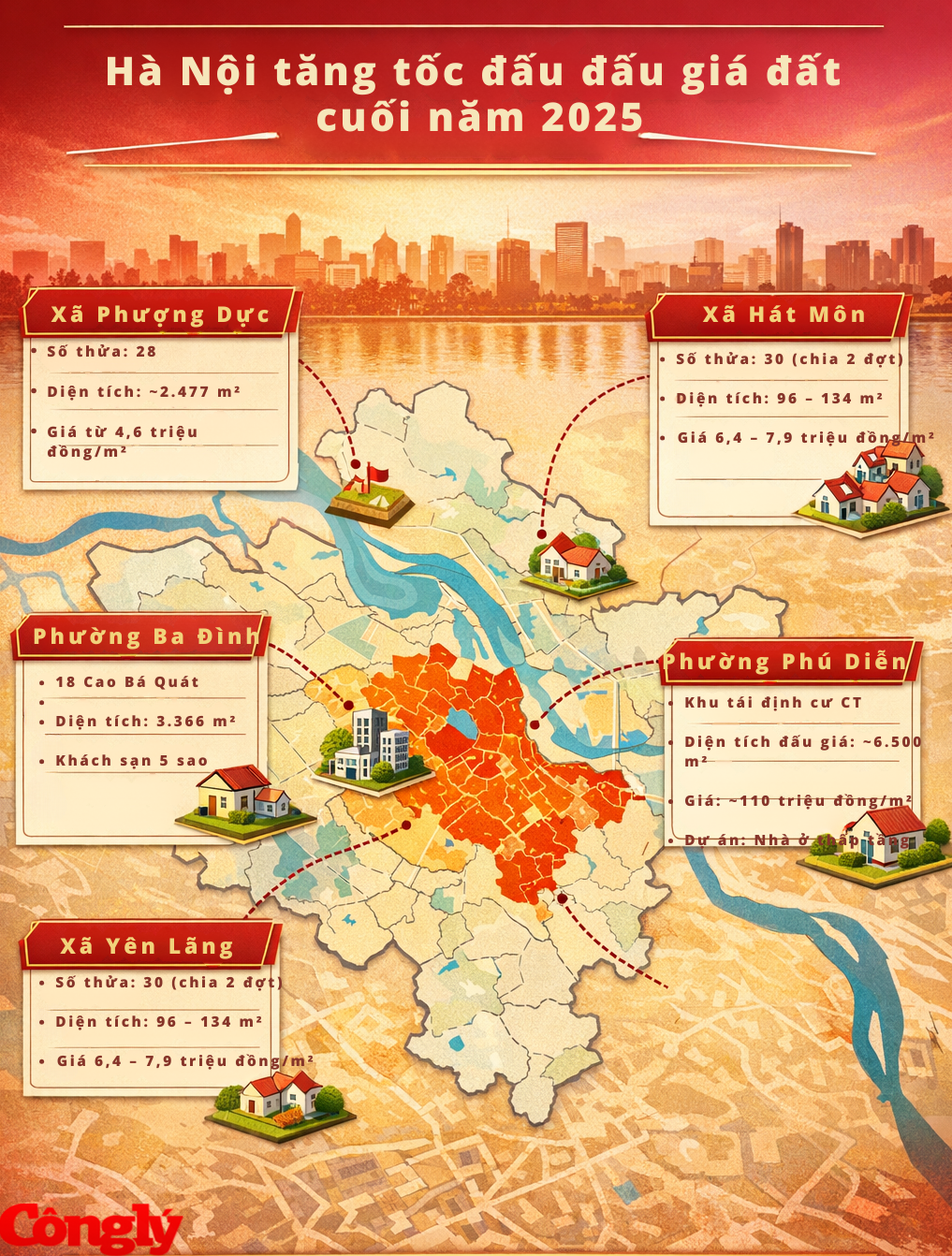 Những tuần cuối cùng của năm 2025, thị trường bất động sản Hà Nội ghi nhận một “làn sóng” đấu giá quyền sử dụng đất diễn ra liên tiếp tại nhiều xã, phường.