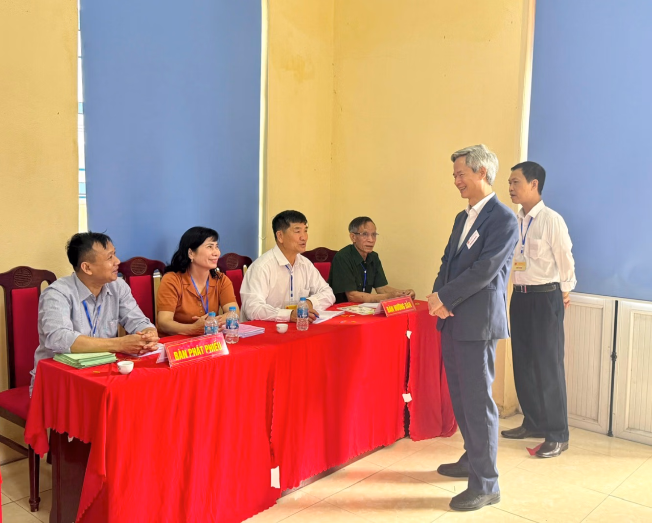 Các thành viên tổ bầu cử có mặt từ sớm để kiểm tra hòm phiếu, chuẩn bị phiếu bầu và hướng dẫn cử tri thực hiện các bước bỏ phiếu.