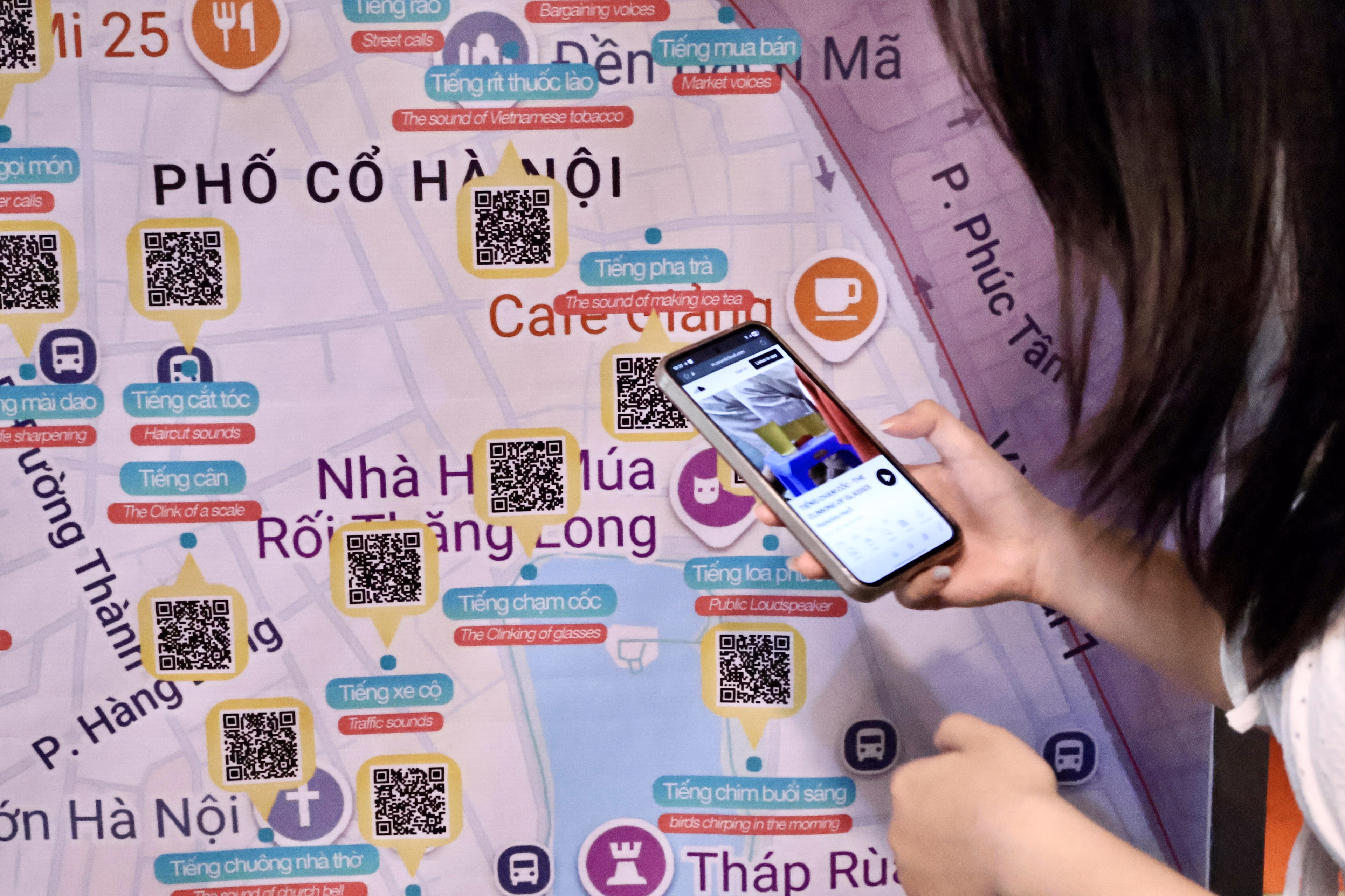 Ở Sound Map, cảnh quan âm thanh được hệ thống hóa trên bản đồ, giúp người nghe cảm nhận mối liên kết giữa âm thanh, địa điểm và dòng chảy đời sống. Hành trình khép lại tại Sound Echo (Memory Wall) - không gian tương tác, nơi công chúng có thể đóng góp ký ức âm thanh cá nhân, tạo nên một “kho lưu trữ sống” về Hà Nội.