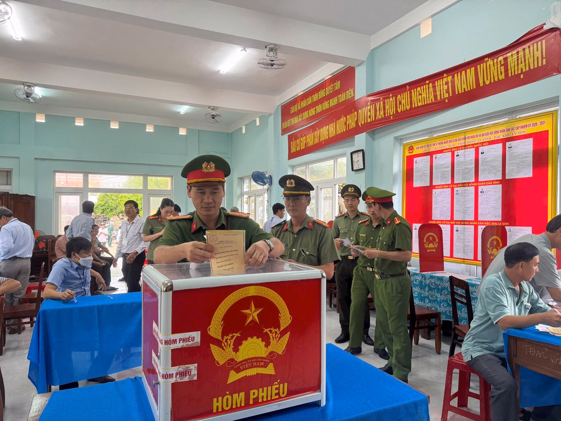 Ở khu vực biển đảo, gần 18 nghìn cử tri tại đặc khu Lý Sơn cũng nô nức tham gia bầu cử tại 8 khu vực bỏ phiếu để lựa chọn đại biểu Quốc hội khóa XVI và đại biểu Hội đồng nhân dân các cấp nhiệm kỳ 2026 – 2031.