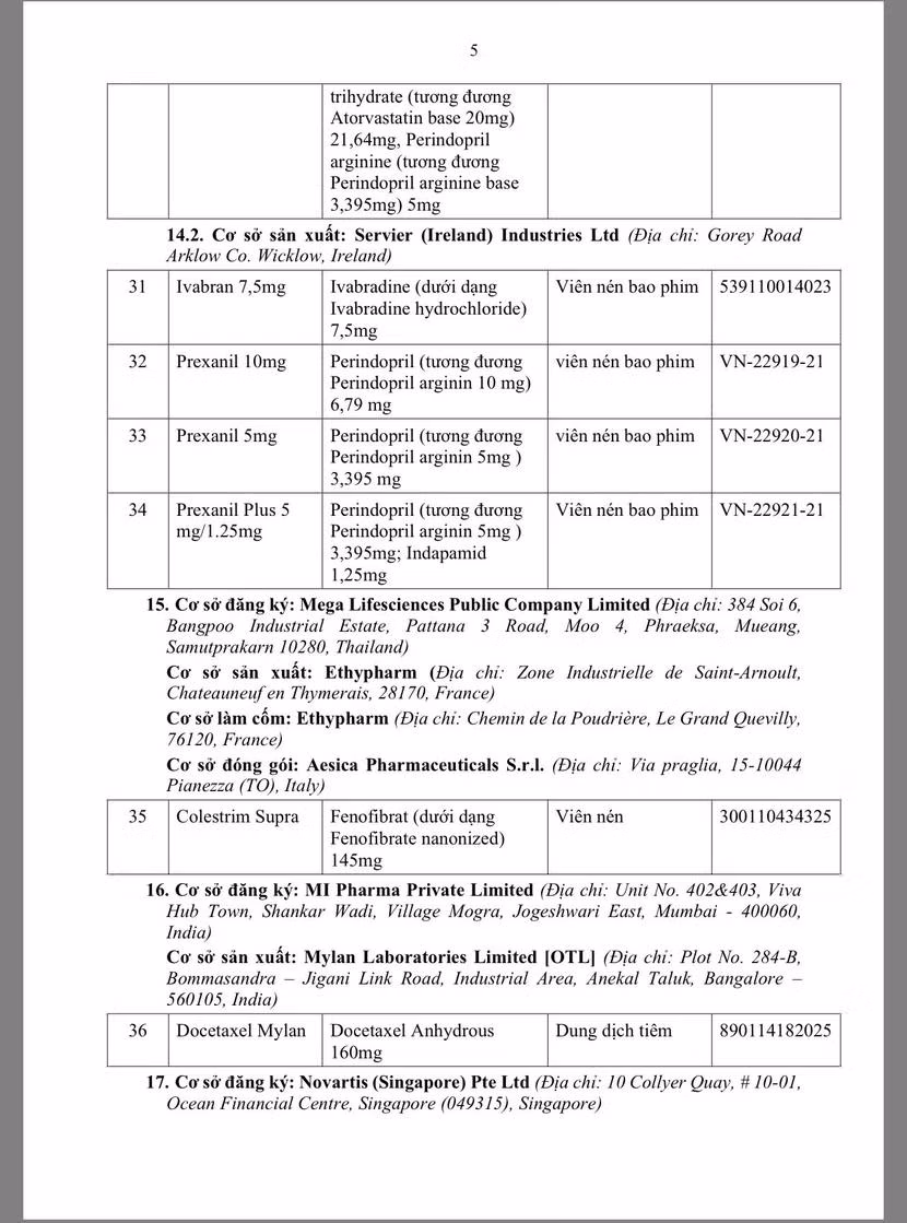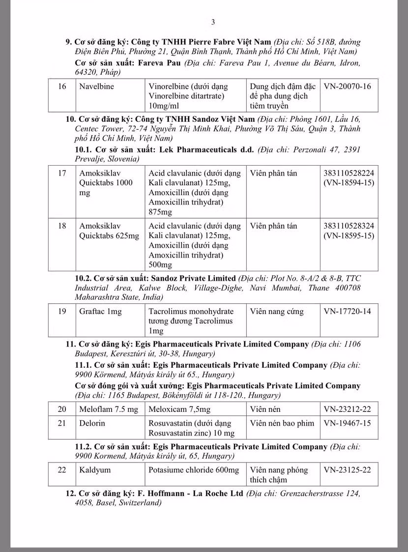 Lý do thu hồi là do “Cơ sở đăng ký thuốc đề nghị tự nguyện thu hồi giấy đăng ký lưu hành thuốc tại Việt Nam”.
