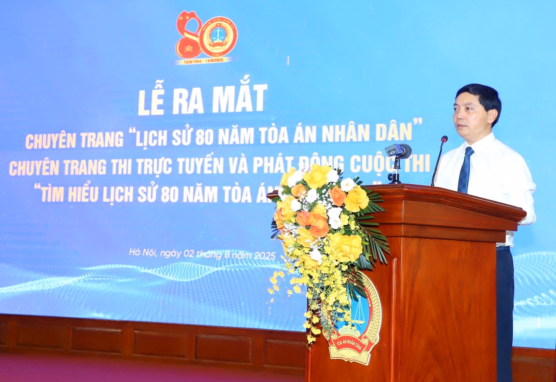 Nhằm thiết thực chào mừng Kỷ niệm 80 năm Ngày Truyền thống Tòa án nhân dân (13/9/1945 – 13/9/2025), sáng nay (2/8), Tòa án nhân dân tối cao đã tổ chức Lễ ra mắt Chuyên trang đặc biệt “Lịch sử 80 năm Tòa án nhân dân”, đồng thời chính thức khai trương Chuyên trang Thi trực tuyến và phát động Cuộc thi “Tìm hiểu lịch sử 80 năm Tòa án nhân dân”.