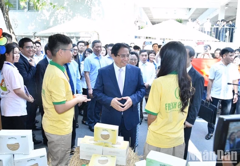 | Thủ tướng Phạm Minh Chính và các đại biểu tham dự Ngày hội Khởi nghiệp Quốc gia của học sinh, sinh viên lần thứ VII (Ảnh: THANH GIANG). |