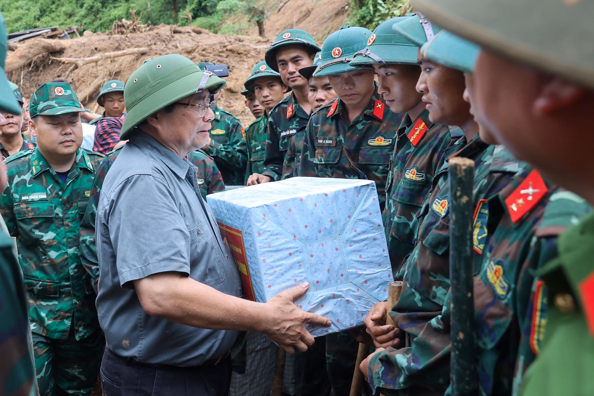 Từ sân bay Điện Biên, Thủ tướng và đoàn công tác di chuyển vào khu vực các xã nói trên bằng đường bộ và trực thăng, thăm hỏi, động viên, tặng quà các gia đình bị thiệt hại do thiên tai, chia buồn cùng các gia đình có người thân bị thiệt mạng. Cùng thời điểm, Bộ Quốc phòng huy động một số trực thăng tiếp tế nhu yếu phẩm cho người dân tại vùng bị cô lập, chia cắt.