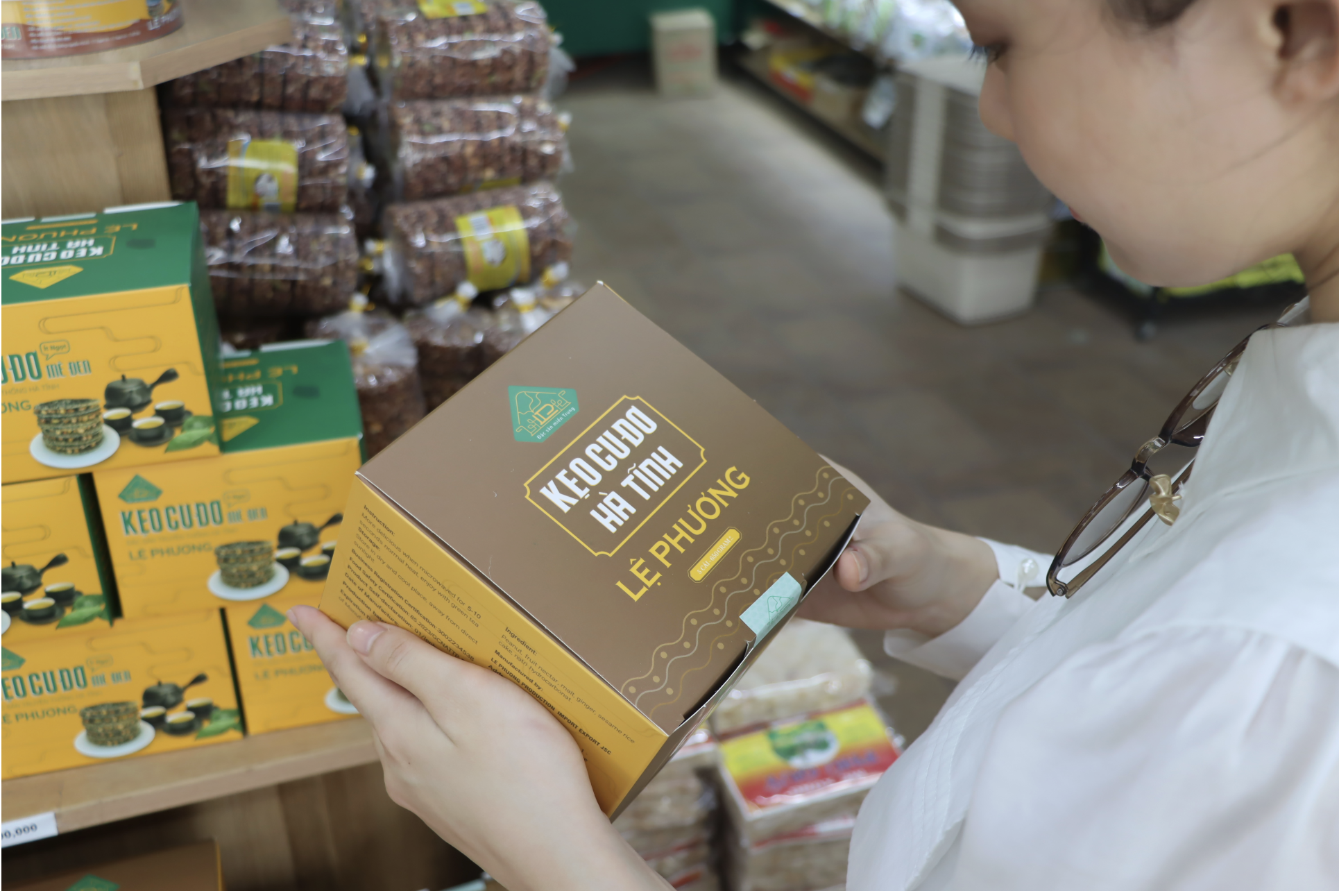 Nổi bật trong số đó là cu đơ Lệ Phương, một sản phẩm gắn với đời sống văn hóa của người Hà Tĩnh. Với vị ngọt của mật, vị bùi của lạc và độ giòn đặc trưng của bánh tráng, sản phẩm không chỉ giữ được hương vị quen thuộc mà còn được cải tiến về bao bì, mẫu mã để phù hợp hơn với nhu cầu mua sắm và làm quà tặng.