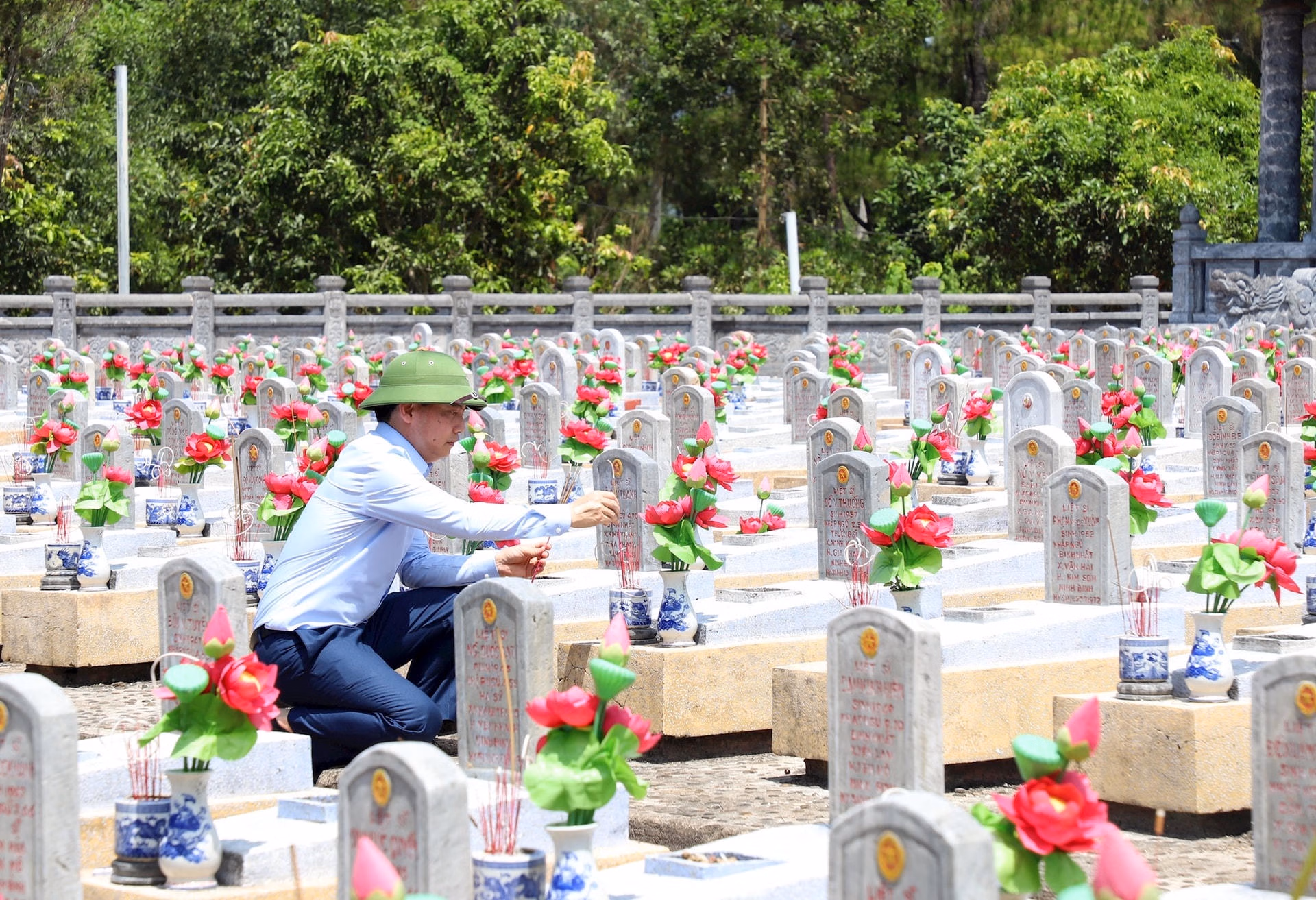 Với lòng thành kính, sự biết ơn vô hạn, trong giờ phút trang nghiêm và xúc động, Đoàn kính cẩn nghiêng mình nhớ tới công ơn các anh hùng liệt sỹ. Cầu mong anh linh các anh hùng liệt sỹ phù hộ cho quốc thái dân an, nước nhà ngày càng phồn thịnh.