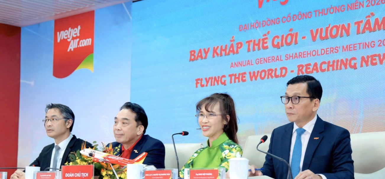 Tại Đại hội đồng cổ đông thường niên 2026 diễn ra ngày 26/4, lãnh đạo Vietjet cho biết hãng tiếp tục theo đuổi định hướng phát triển với chiến lược mở rộng mạng bay quốc tế, gia tăng hiện diện tại các thị trường trọng điểm và đầu tư thêm vào đội tàu bay hiện đại.